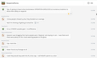 As of this writing, the MeWe “Reopen California” group is involved in planning at least eleven anti-quarantine protests across the state, mostly in coastal Southern California. Five of them are scheduled for Friday, May 1st in L.A., Sacramento, San Bernardino and Orange Counties and in San Diego.